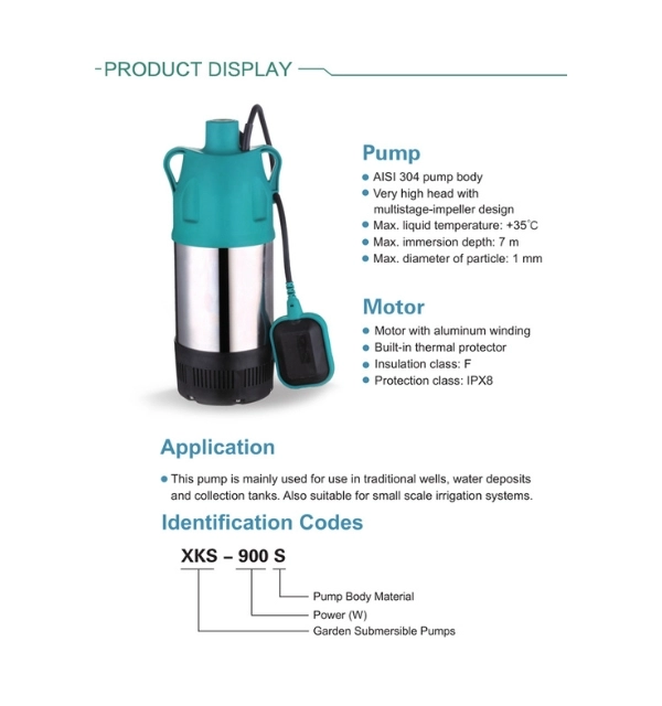 This submersible pump model LEO XKS-900S combines power, durability, and efficiency to provide a reliable solution for home water tanks and deep water sources. Its solid design ensures long-lasting performance in various environments, making it a trusted choice for multiple water pumping applications.